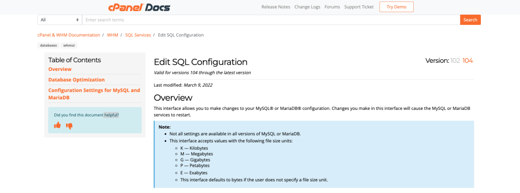I led the effort to build the support documentation for the Edit SQL interface my team introduced in cPanel&WHM version 102.