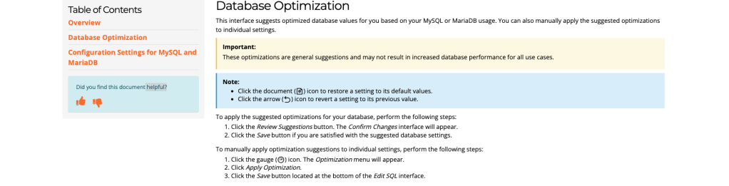 In version 104, I worked with our team’s UI developer to document the database optimization UI options we added in the new version.